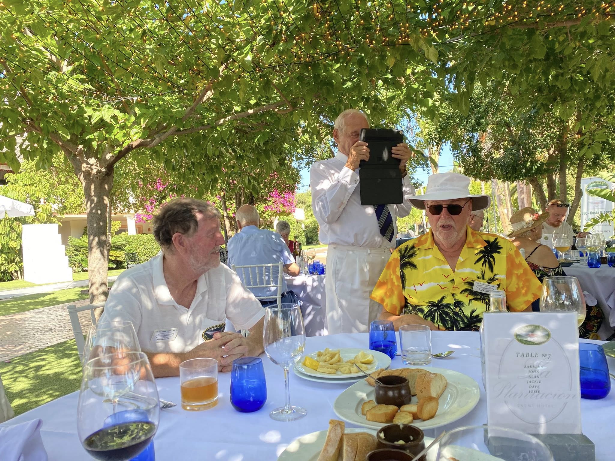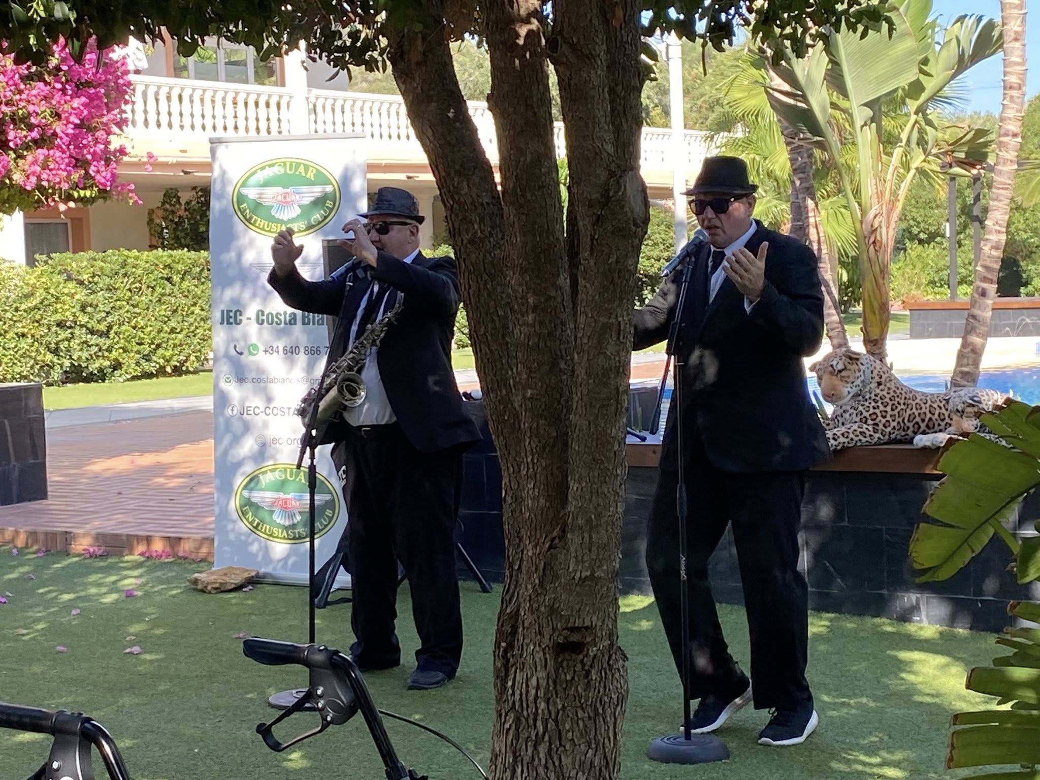 Written by Sandra Brook September 18th JAGUAR PARTYING AT THE PLANTATIONAfter time for a meet and great with a drink from the outside bar, Lunch was served at 15.00hrs under the shade of trees, where a fine mist of water intermittently sprayed to keep everyone cool. The weather was once again in our favour 30deg and no wind with a complete blue sky, which was ideal for our day and evening event. At 17.00hrs the entertainment began when the Costa Blues Brothers started their live performance creating a fantastic atmosphere, that had the dance floor full of energetic dancers, who danced to their live singing and instrument playing . A magical night was had by all when the gardens came to life, after many mystical lights began shining brightly over the tables, and the beautiful swimming pool along with many palm trees stood out of the darkness in a wonderful display of colour, truly creating the most wonderful backdrop to the dance area . The event had been booked for 50 people and 16 of them were lucky to be able to book the night in the hotel’s luxurious rooms, as they only have 8 rooms, so other members booked rooms in nearby hotels for the night, as some had travelled quite a distance to attend this amazing Jaguar event . If you would like to join us and own a Jaguar email Mike on mikebikejec@gmail.com. Or ring on 0034640866711 WhatsApp as well